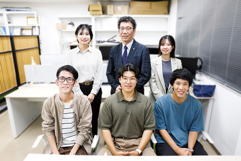 株式会社Fujitakaは、飲食店の券売機やテーマバーク施設の入退場ゲート機、商店街のアーケードなど商業・公共空間をプロデュースする「ものづくり」の総合商社だ。木造建築のコインランドリーや太陽光発電などSDGsに配慮した製品も扱い、環境事業に造詣が深い。株式会社Fujitakaからは菊田さん、安原さん、竹鼻さんの3人が研究室を訪問、西田先生と学生4人が迎えた。