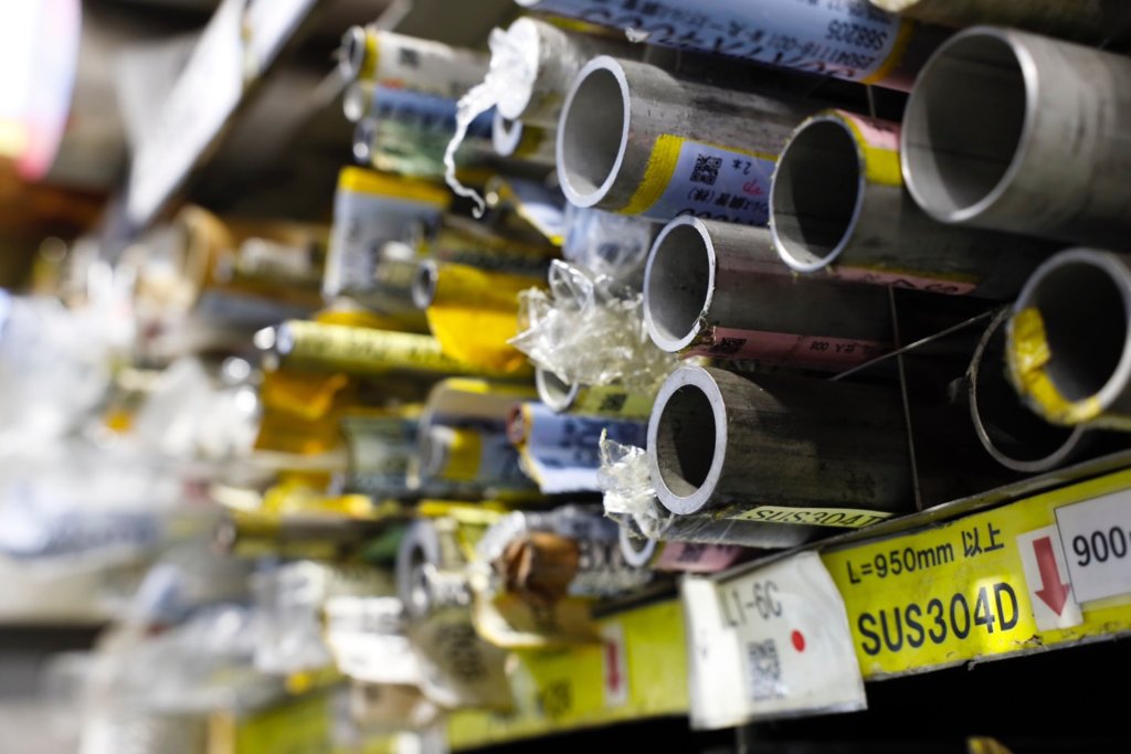 在庫の種類の豊富さと、多様な切断機を保有数しているのは川十の強み。また、トレーサビリティにより徹底した品質・在庫管理を実現。
