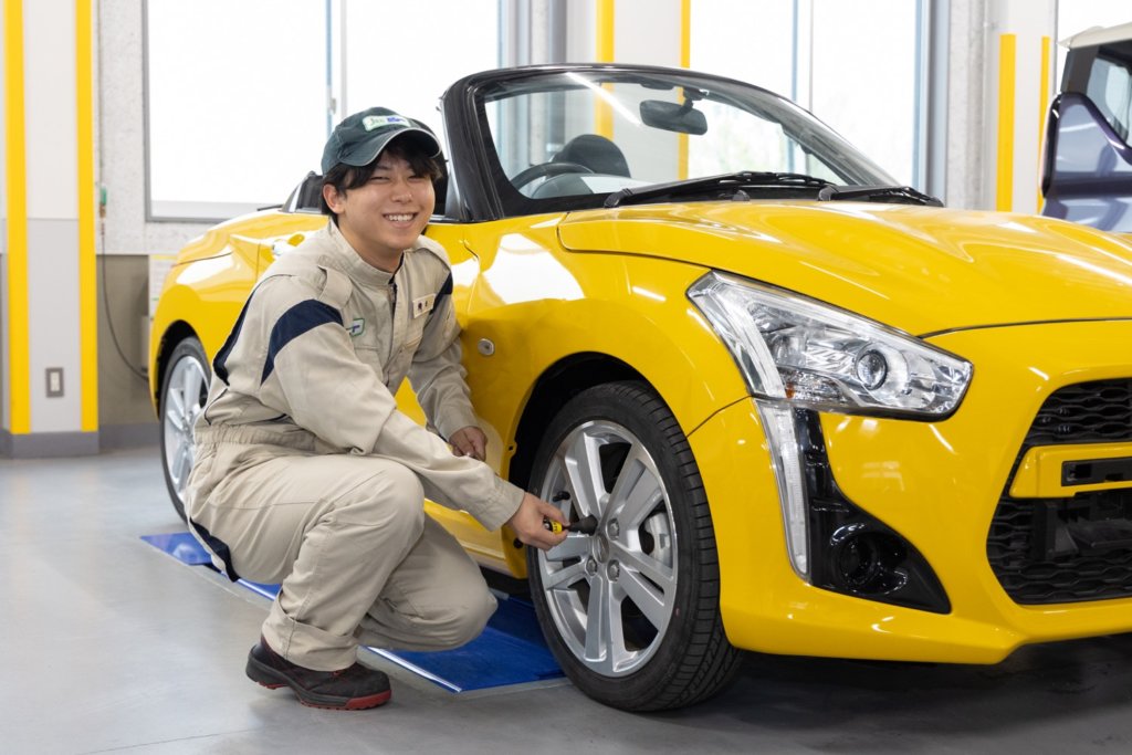 工業高校出身。工作機械への道も迷いましたが、進路ガイダンスで、整備士以外の知識と技術も身につけられると知って進学。カスタムカーを製作し、鉄工、アルミ、鈑金などでパーツを作る作業がおもしろく、4年間はあっという間でした。アルバイトでタイヤ交換した際に、お客さまから「これで安心して運転できます」と言ってもらえてうれしかったです。整備、鈑金、塗装など車のことならなんでもできる、頼られる整備士になりたいです。