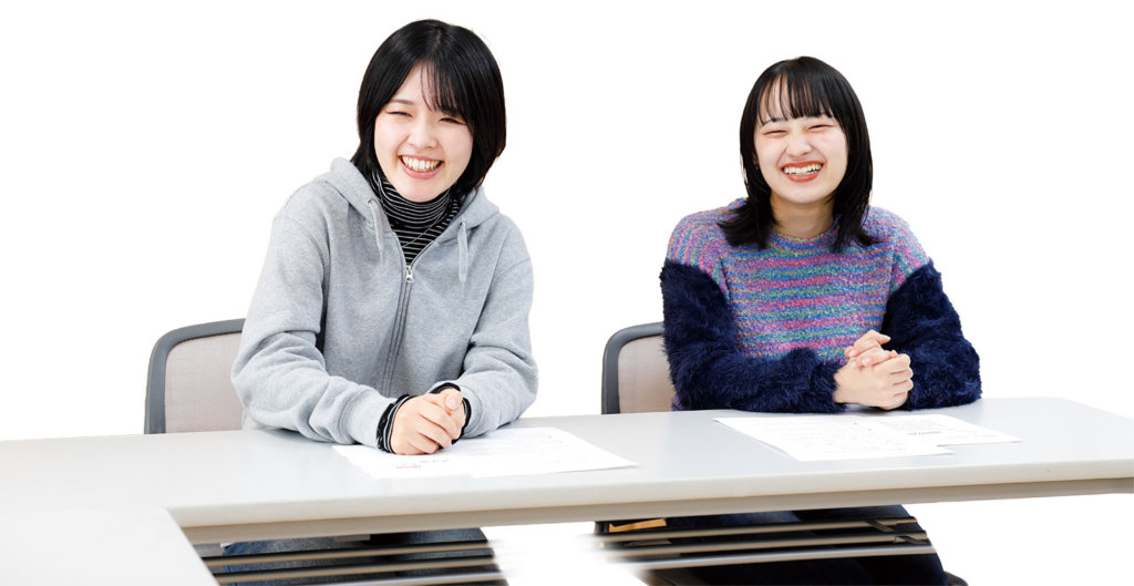 今回訪問したのは、福祉業界を志望する学生・渕田さんと湯浅さんだ。学生たちが知りたいのは「日々の仕事に、自分の個性は活かせるか?」ということ。答えてくれたのは、ともに入職7年目、30歳の若手職員、曽和聖香さんと戸波ほのかさん。「職員の個性は活かせます!」と2人は口を揃える。